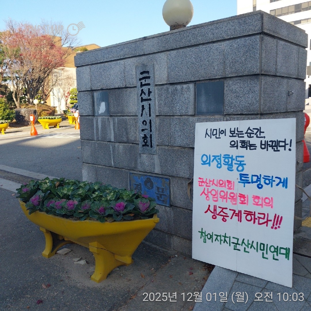 - 군산시의회 상임위원회 생중계 1인시위(오전9시~10시, 군산시청 정문)